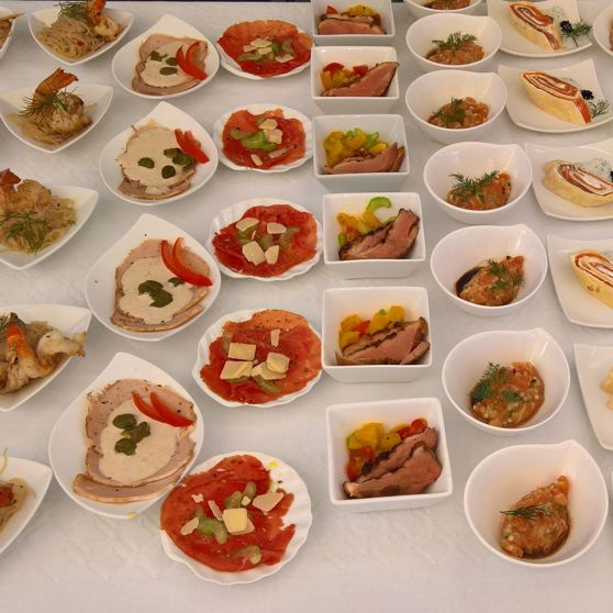 Fingerfood Lachs & Roastbeefroulade Fingerfood Vitello, Carpaccio, Ente Hauptgänge